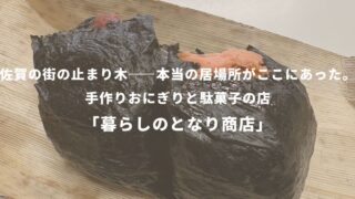 暮らし 佐賀の街の止まり木――本当の居場所がここにあった。手作りおにぎりと駄菓子の店「暮らしのとなり商店」 佐賀市城内にある「暮らしのとなり商店」は、手作りおにぎりと駄菓子で子どもと大人の心を満たす止まり木のような居場所。店主・西岡あきこさんの想いと、地域に根づく温かな空間を紹介します。 暮らし食べる