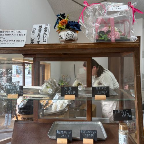 カウンターの上には、ショーケースに並べられた美味しそうなおにぎりたち。